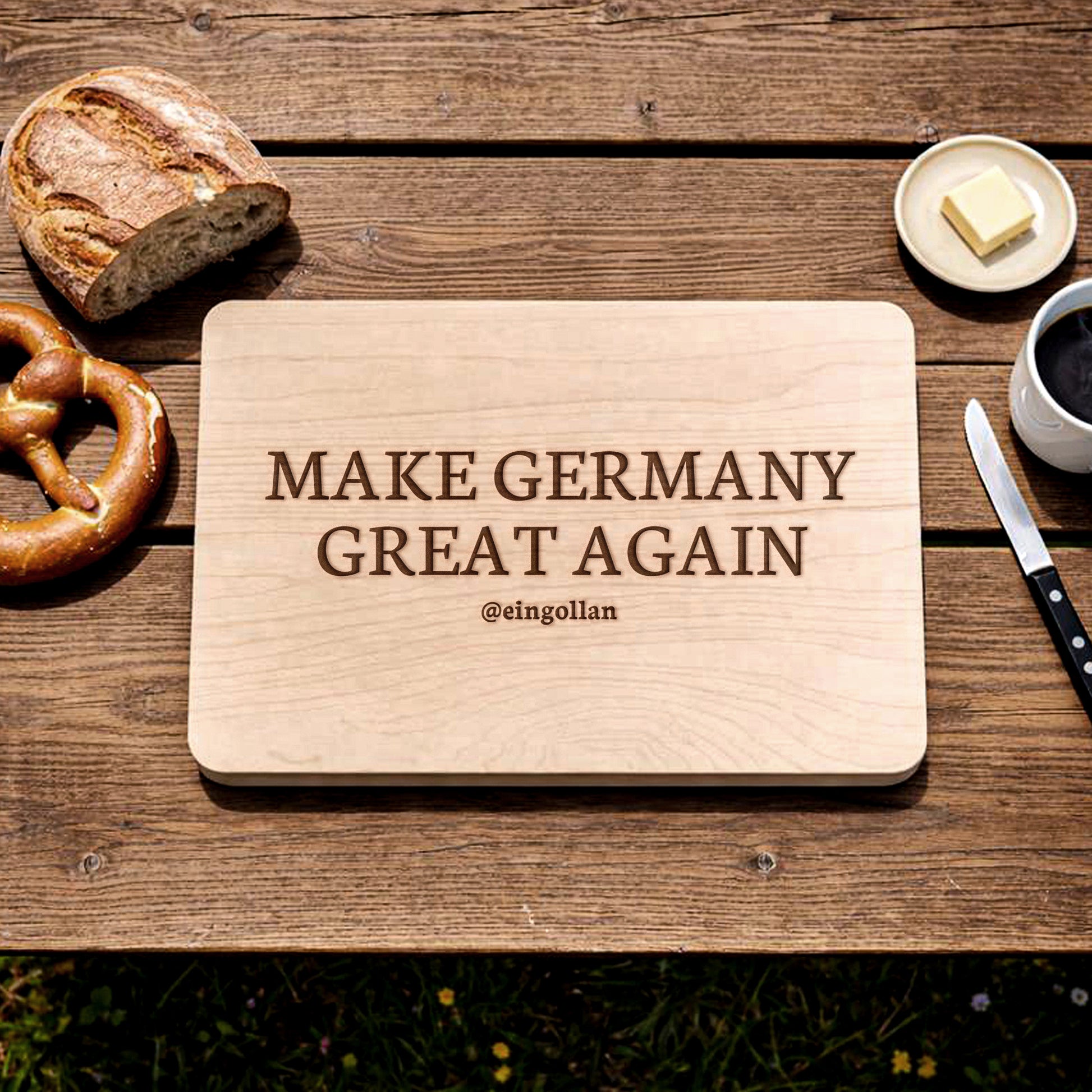 MGGA Eingollan Schneidebrett | Frühstücksbrettchen mit Gravur Küchenbrett Make Germany Great Again